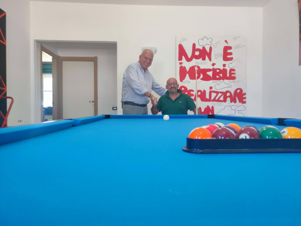Proprio in queste ore, pertanto, la Federazione ha concesso al Villaggio, in comodato d’uso, un tavolo da Pool o “Palla 8”, com’è comunemente chiamato questo gioco così diffuso. Dopo l’avviamento di un vero e proprio corso, pertanto, il Biliardo sarà utilizzato dai ragazzi durante gli abituali momenti di relax, nei giorni in cui non sono impegnati nelle attività scolastiche o lavorative. L’idea, inoltre, è anche quella di sviluppare una sana e leale competizione promuovendo l’integrazione anche con gruppi esterni, come Scout, Azione Cattolica, associazioni del territorio.